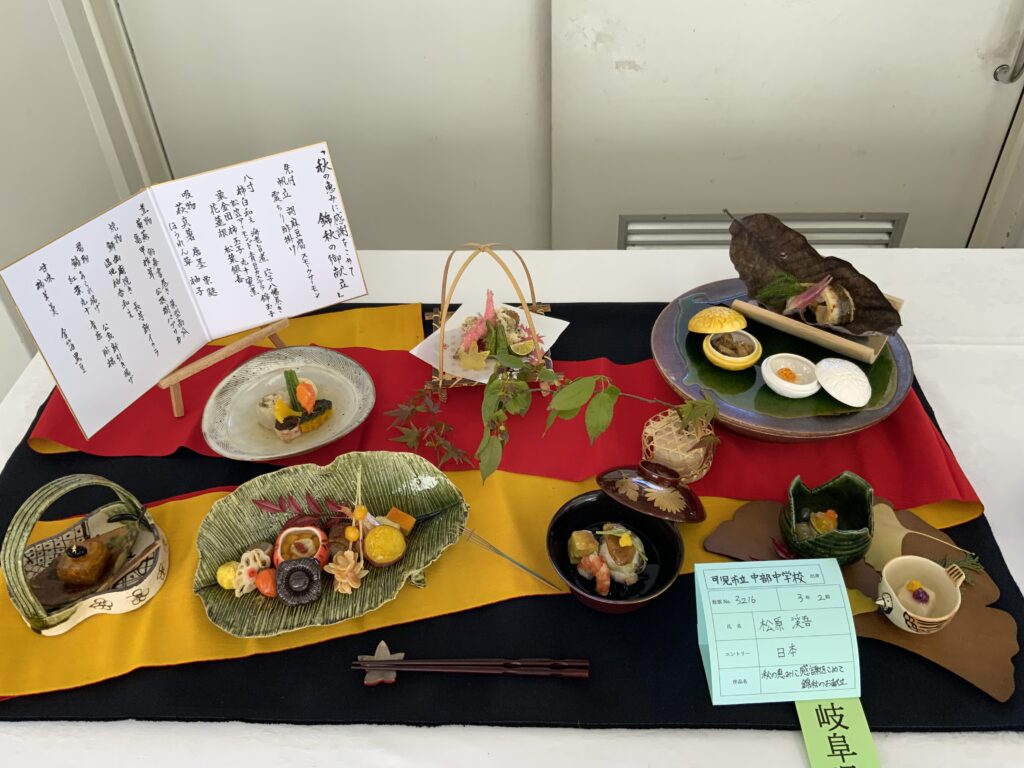 「今回、知事賞という素晴らしい賞をいただいて、とても嬉しいです。昨年、僕は銀賞をいただき、悔しい気持ちが残り、少しずつではありましたが準備を重ねてきました。この作品は自分だけの力ではなく、先生方や仲間、家族の支えがあったからこそ作ることができました。このフードフェアで得ることができた全てのことを胸に、自分の夢に進んでいきたいと思います。」