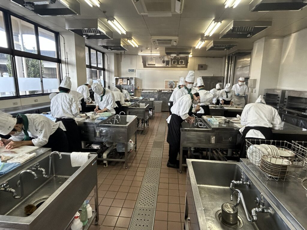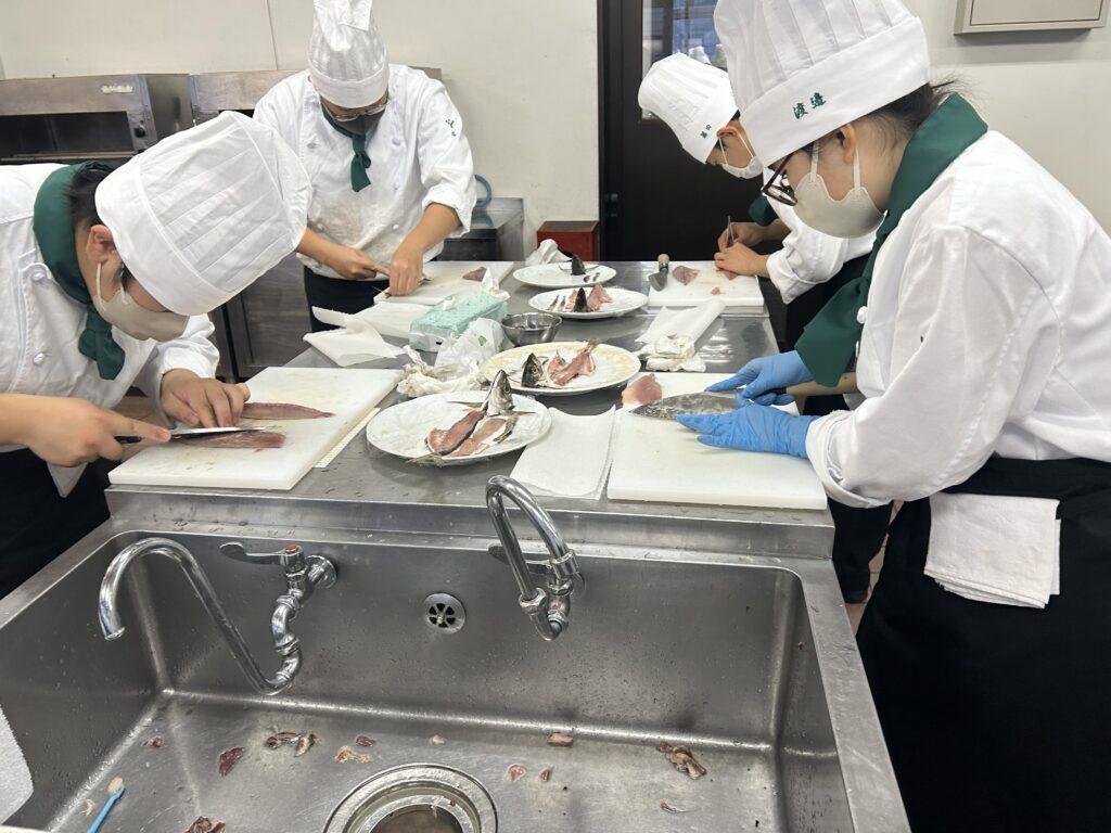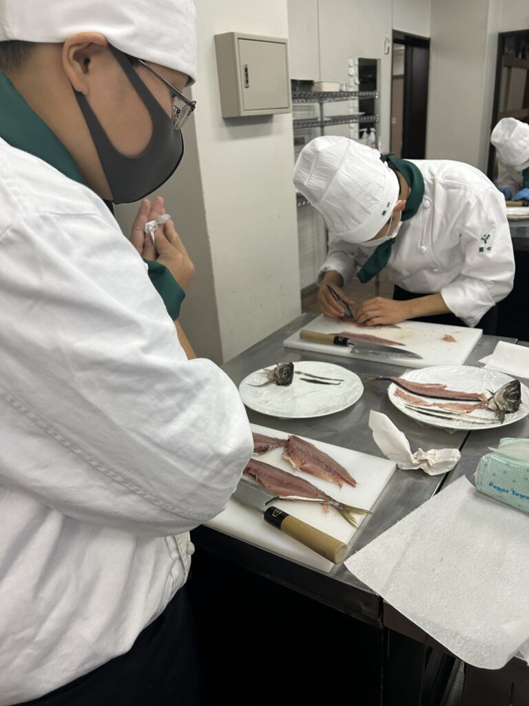 12月8日(月)1年生調理科の調理実習で、実技試験「鯵の三枚おろし検定」が行われました。年に一度の単位認定実技試験の合格を目指し、生徒たちは授業や放課後に何日も練習を繰り返し、本番に臨みました。調理科の皆さん、お疲れさまでした。