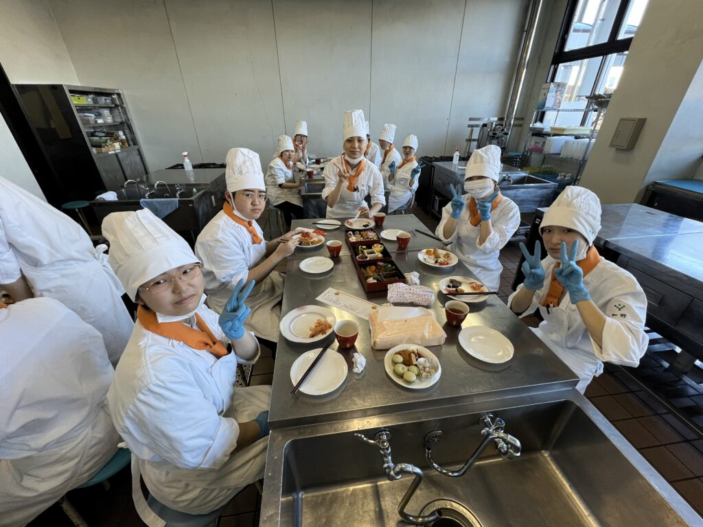 「仕込みの日はクラス全員が班ごとにそれぞれの料理の準備ができていました。その姿を見て3年間の努力・協力する力が発揮できていたので嬉しいです。完成の日は一人一人が個人として行動し盛り付けまでクラス全員が集中して取り組むことができ、素晴らしいおせち実習になりました。」