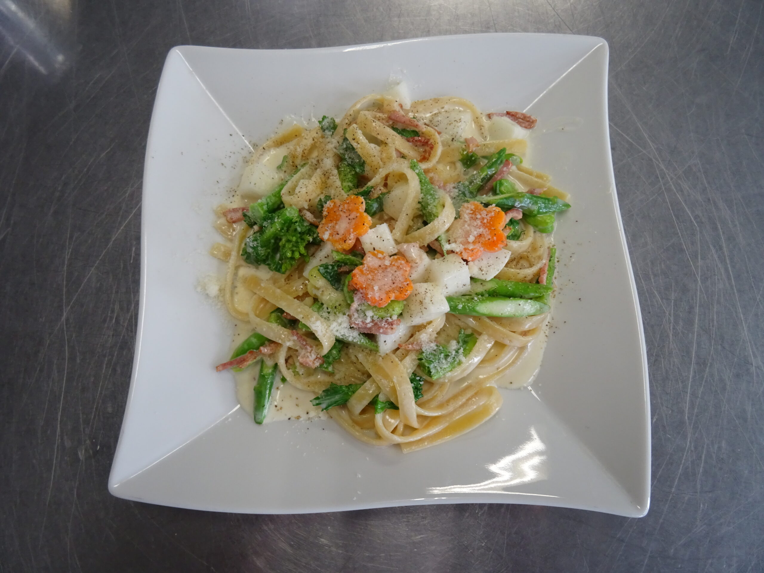 2月20日(金)普通科調理実習(春野菜のクリームパスタ)を実施しました。ブイヨンと生クリームから作るソースは、普段のレトルトとは全然違いました。野菜の下準備、ソース作り、麺をゆでて、完成まであっという間でした。パスタは […]