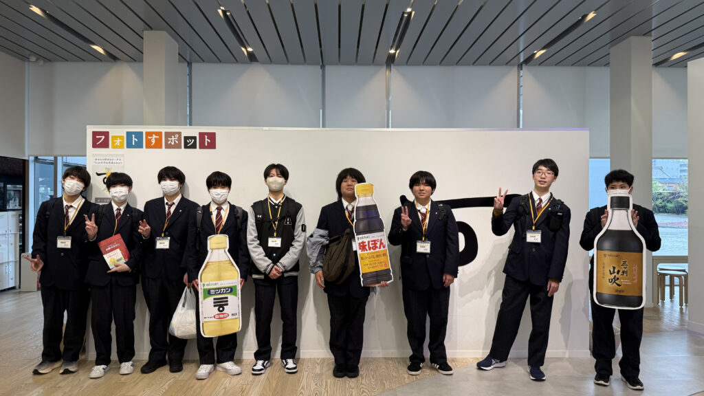 普通科校外研修「ミツカンミュージアム」 2026年4月17日 4月10日(金) 普通科校外研修「ミツカンミュージアム」を実施しました。ガイドさんの案内のもと、お酢の歴史や、ミツカンの企業について学ぶことができました。最後は、好きなポーズで写真を撮り、オリジナルボトルを作ってお土産にしました。