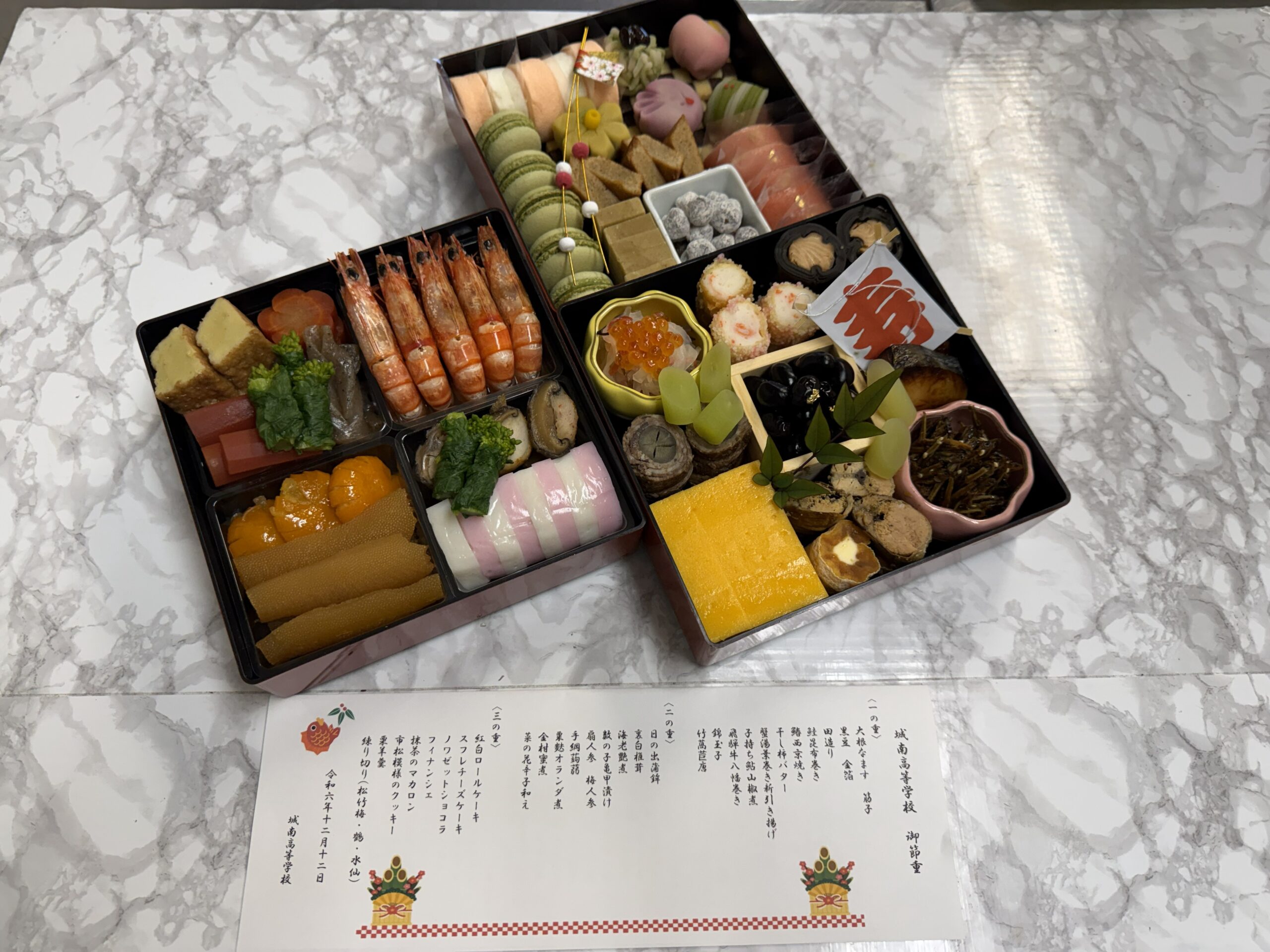12月18日(木)3年生が調理科・製菓科の合同おせち実習を実施しました。調理科はおせち料理、製菓科はスイーツおせちを数回の実習に渡って仕込みを行い、今回の合同実習で完成させました。生徒達はこれまでの実習の集大成ともなる […]